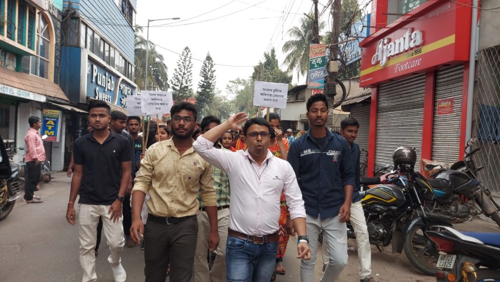 এর প্রতিবাদেই শুক্রবার কাঁথি শহরে মিছিল করে প্রভাত কুমার কলেজের শাসক দলের ছাত্র ইউনিট।