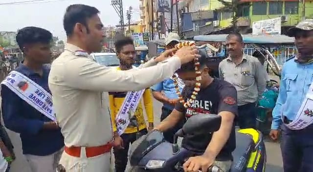 পথ চলতি মানুষ ও সিভিক ভলেন্টিয়ারদের সঙ্গী নিয়ে সচেতনতার বার্তা দিল হলদিয়ার মঞ্জুশ্রী মোড়ে। হেলমেট বিহীন বাইক আরোহীদের ধরপাকড় করে , তাদের গলায় ফুলের মালা পরিয়ে দেওয়া হল। শুধু তাই নয় তাদেরকে একটি করে গোলাপ ফুল উপহার তুলে দিল। প্রথমটা লজ্জায় পড়লেও হাসিমুখে তা গ্রহণ করে ।এই দৃশ্য দেখে হতবাক বাইক আরহী থেকে পথ চলতি মানুষ। এর সাথে হলদিয়ার ট্রাফিক অফিসার বলেন, এইভাবে ওয়ার্নিং দেওয়া হলো, এর পরের বারে বড়সড় আইনি ব্যবস্থা নেওয়া হবে। এখনই সাবধান হোন। এবং নিয়ম মেনে গাড়ি চালান। হলদিয়ার মোড়ে বাইক আরোহীদের ধরতে অভিনব উদ্যোগ নিলেন হলদিয়ার ট্রাফিক অফিসার সুরজিৎ চক্রবর্তী ,রানা ব্যানার্জি । হলদিয়ার এসবিপিও রাহুল পান্ডের নেতৃত্বে এমনই নয়া উদ্যোগ নেওয়া হয় বলে জানায়।