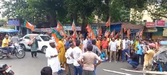 তুলে চুঁচুড়ায় জি টি রোড অবরোধ করে বিক্ষোভ বিজেপি কর্মিদের।