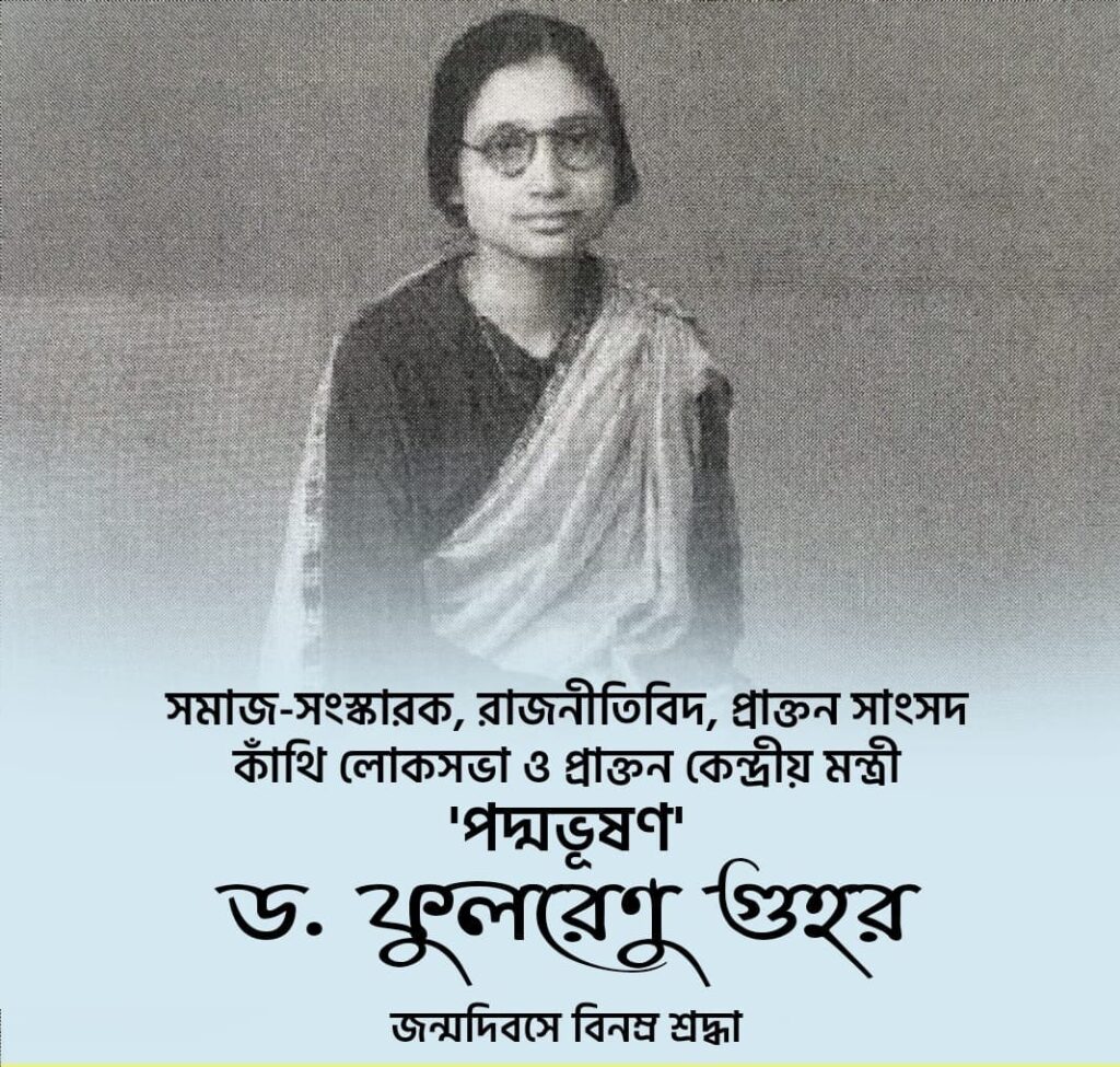 শিক্ষাবিদ, স্বাধীনতা সংগ্রামী ,রাজনীতিবিদ,সমাজ কর্মী ফুলরেণু গুহর কর্মগাথা কৃতজ্ঞ চিত্তে স্মরন করে এখন সংবাদ পরিবার,তাঁকে জানায় শতকোটি প্রনাম