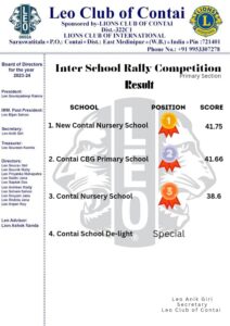 লিও ক্লাবের সম্পাদক অনিক গিরি খুব শীঘ্রই সফল প্রতিযোগী স্কুল গুলির হাতে পুরস্কার তুলে দেওয়া হবে।