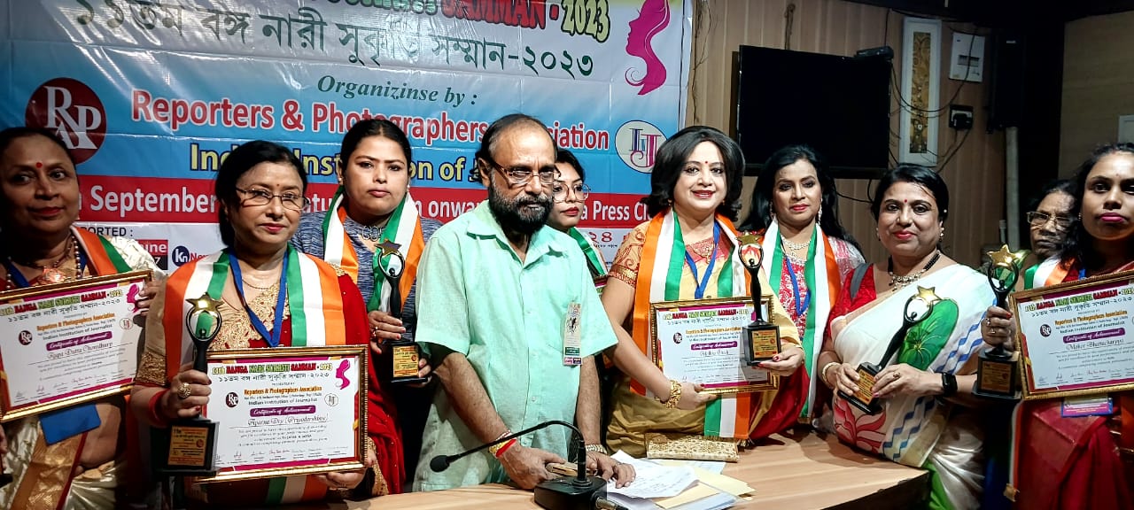 ইন্দ্রজিৎ আইচ :- বর্তমান সমাজে নারী পুরুষের থেকে আর পিছিয়ে নেই। পুরুষের সাথে তাল মিলিয়ে সমানভাবে তাদের লক্ষে এগিয়ে চলেছে। পুলিশ, উকিল, বিচারপতি, ডাক্তার, ইঞ্জিনিয়ার, সাংবাদিক, উদ্যোগপতি, শিক্ষাবিদসহ সবদিক থেকে নারী সম্মানের সঙ্গে এগিয়ে চলেছে। তাদের এই এগিয়ে যাওয়াকে সম্মান জানাতে কলকাতা প্রেস ক্লাবে রিপোর্টারস এ্যান্ড ফােটোগ্রাফার এ্যাসোসিয়েশন ও ইন্ডিয়ান ইনস্টিটিউট অফ জার্নালিস্টের যৌথ উদ্যোগে ‘১১তম বঙ্গ নারী -সুকৃতি সম্মান-২০২৩ ‘ অনুষ্ঠানের আয়োজন করেন, নারীদের তাদের নিজস্ব কর্মকাণ্ডকে সম্মান জানাতে ট্রফি ও সার্টিফিকেট প্রদান করা হয়।