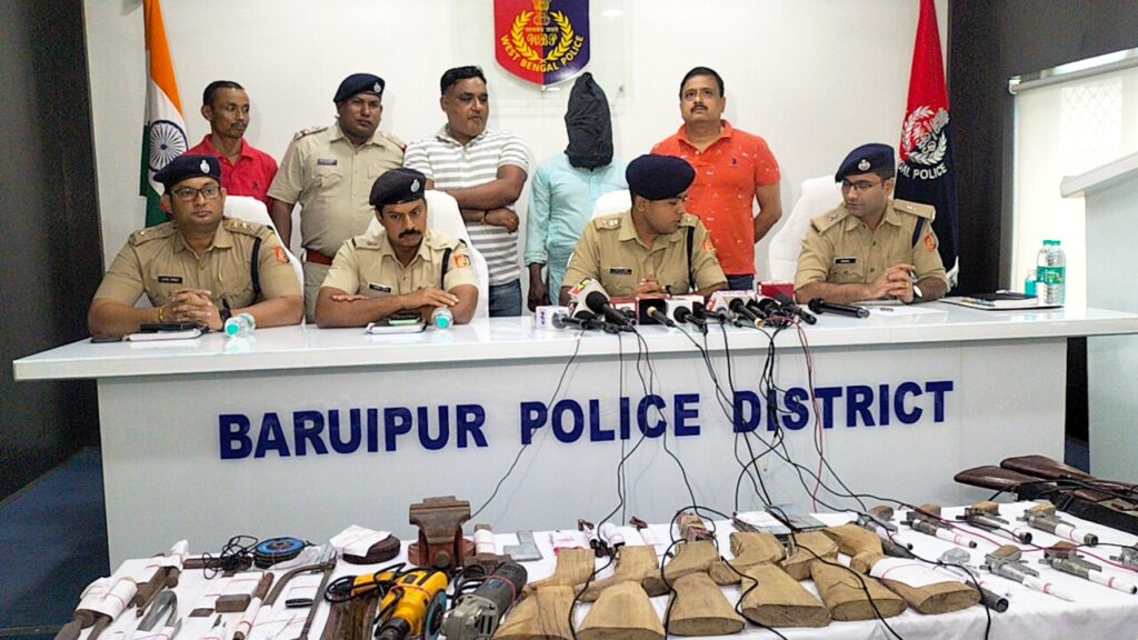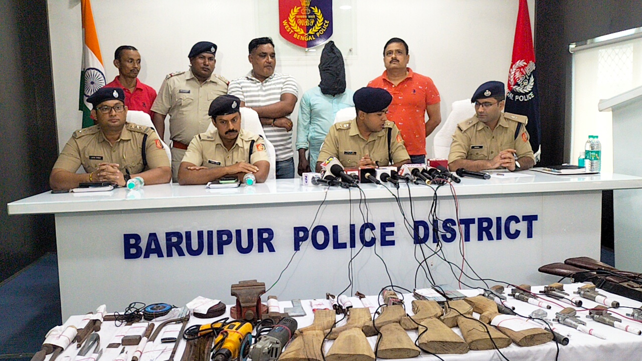 বারুইপুর পুলিশ জেলার স্পেশাল অপারেশন গ্রুপ, জয়নগর থানা ও বকুলতলা থানার পুলিশ যৌথভাবে অভিযান চালায়। মুলত ক্রেতা সেজে যোগাযোগ করা হয় অস্ত্র ব্যবসায়ীর সাথে। নির্দিষ্ট অর্থের বিনিময়ে মঙ্গলবার বিকেলে অস্ত্র ডেলিভারি করার কথা ছিল। জয়নগরের ময়দা এলাকায় একটি নার্সিংহোম এর সামনে। সন্ধে ৬টা সময় দেওয়া হয়। প্রায় দেড় ঘন্টা ঘন্টা বিভিন্ন জায়গায় ঘোরানো হয়। পুলিশ কর্মীরা বাইক ও অটোতে ছিল। বিভিন্ন জায়গায় ঘোরার পর ময়দা এলাকা থেকেই অভিযুক্তকে ধরা হয়। ধৃতের বাডি জয়নগর থানা এলাকার কাশীপুর কামারিয়া এলাকায়। মুলত নির্জন এলাকায় দু কামরার ঘর ও সামনে টালির চাল থাকায় বাড়িতে চলছিল অস্ত্র তৈরির কারবার। বাড়ির পেছনেই রয়েছে পুকুর। যাতে কেউ কিছু বুঝতে না পারে। পুকুরের ভিতরেও আর্মস লুকানো ছিল। সেখান থেকেও আর্মস উদ্ধার করে পুলিশ। বাড়িতে অভিযুক্ত তার স্ত্রী ও ছেলে থাকত। ধৃত বড় অস্ত্র ডিলার বলে জানা গিয়েছে । ঘটনাস্থল থেকে উদ্ধার অস্ত্র তৈরি করার পালিশ মেশিন, ড্রিল মেশিন, ডাইস, ফাইল, করাত, হ্যাক্সো, বাটালি, হাতুড়ি, লোহার পাত, পাইপ উদ্ধার। ৮টি ওয়ান সাটার, ২টি এক নালা বড় বন্দুক উদ্ধার হয়। ধৃত ব্যক্তিকে আজ বারুইপুর মহাকুমা আদলাতে তোলা হয়। পুলিশের পক্ষ থেকে নিজেদের হেফাজতে নেওয়ার জন্য আদালতে আবেদন জানায়। বারুইপুরে মহামান্য আদালত ধৃত ব্যক্তিকে পাঁচ দিনের পুলিশি হেফাজতে রাখার নির্দেশ দেন।