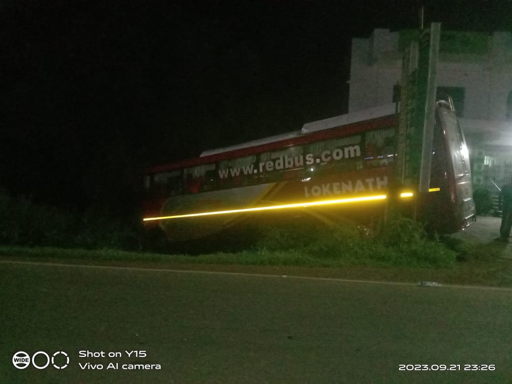 পূর্ব মেদিনীপুর জেলার দিঘা নন্দকুমার ১১৬বি জাতীয় সড়কের রামনগর থানার ঠিকরা পেট্রল পাম্পের কাছে বৃহস্পতিবার রাত্রি ১০টা নাগাদ একটি বেসরকারি বাস নিয়ন্ত্রণ হারিয়ে নয়নজুলিতে পড়লো বাস।