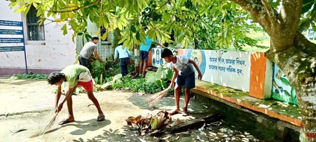 বিদ্যালয় ক্যাম্পাসে অবস্থিত ছাত্রবাস ও ছাত্রীনিবাসের আবাসিকগন নিজেরা জন্জাল পরিস্কার করে ব্লিচিং পাউডার ছডিয়ে দিচ্ছে গোটা ক্যাম্পাস জুডে । শিশুদের কাছে বাড়ির পর প্রিয় আবাস্থল ও ভাল লাগার জায়গা হলো তাদের শিক্ষালয় ।