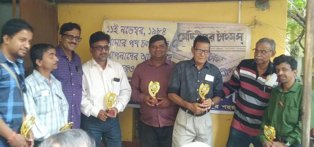 অবিভক্ত মেদিনীপুরের জেলার অন্যতম প্রাচীন পত্রিকা বিপ্লবী মেদিনীপুর টাইমস্ এর চল্লিশ তম বর্ষে পদার্পণ অনুষ্ঠান অনুষ্ঠিত হলো ঘরোয়া ভাবে। সম্প্রতি মেদিনীপুর শহরের মির্জাবাজার এলাকার চক্রবর্তী পরিবারের উঠোনে আয়োজিত এক ঘরোয়া অনুষ্ঠানে বহু বিশিষ্টজন ও শুভানুধ্যায়ীদের উপস্থিতিতে পত্রিকার চল্লিশ তম জন্মদিন অনুষ্ঠান অনুষ্ঠিত হয়। পত্রিকার পথচলার শুরুর দিকের একসময়ের লেটার প্রেস যুগের কম্পোজিটর শেখ সেলিমের উপস্থিতিতে চক্রবর্তী পরিবারের দুই শিশু প্রতিনিধি শাক্য চক্রবর্তী ও পাহি চক্রবর্তী কেক কেটে চল্লিশ তম জন্মদিনের অনুষ্ঠানের সূচনা করেন। পাশাপাশি এই অনুষ্ঠানে সঙ্গীত পরিবেশন করেন দুই শিশু শিল্পী শ্যাক্য এবং পাহি। হল। এদিন বিশিষ্ট ভাবে সম্মানিত করা হয় লেটার প্রেস যুগের পত্রিকার কম্পোজিটর শেখ সেলিমকে। এদিনের অনুষ্ঠানে অতিথি হিসেবে উপস্থিত ছিলেন সাংস্কৃতিক ব্যক্তিত্ব প্রণব চক্রবর্তী, লোকসংস্কৃতি গবেষক ও প্রাক্তন শিক্ষা প্রশাসক ড. মধুপ কুমার দে পত্রিকার শুভানুধ্যায়ী অসিত দত্ত,শ্যামল দাস,শান্তি দত্ত, বিশ্বেশ্বর সরকার,বিদ্যুৎ পাল, সুধাময় সরকার, মৃণাল দত্ত, সুতপা বসু, শুভাশিষ ঘোষ, রাজু বালি, অমিত সাহু, অখিলবন্ধু মহাপাত্র, সুদীপ কুমার খাঁড়া,মহম্মদ আসিফ,প্রতাপ চ্যাটার্জী সুতপা বসু, নরোত্তম দে, সৌমিত্র চক্রবর্তী,পল্লব সেনগুপ্ত সহ বহু বিশিষ্ট ব্যক্তিত্ব ও পত্রিকার শুভানুধ্যায়ীবৃন্দ।