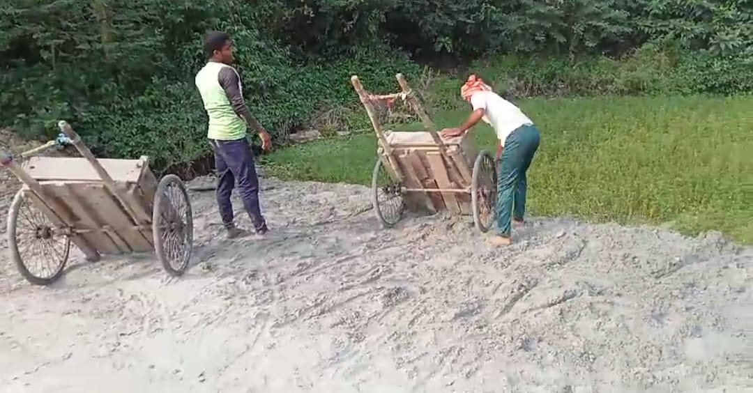 কর্মকার পাড়ায় গিয়ে দেখা গেল সকাল থেকেই চলছে ভরাটের কাজ। দুপুর পর্যন্ত চলে কাজ। মাটি ও সাদা বালি ফেলে পুকুর প্রায় পুরো ভরাটই হয়ে গিয়েছে। কিছু বাকি আছে। এই কাজের এক শ্রমিক বললেন, ৬ কাঠারও বেশি জায়গায় এই ডোবা। আমরা ৫০০ টাকা দৈনিক রোজে কাজ করছি। ক্যানিং ও উত্তরভাগ থেকে মাটি ও সাদা বালি আনা হচ্ছে। একটি বড় প্রজেক্ট হবে বলে আমরা জেনেছি। মদারাটের বটতলার এক ইমারতি ব্যবসায়ী আমাদের দিয়ে এই কাজ করাচ্ছেন। এলাকার বাসিন্দারাও এই ভরাটের ঘটনায় ক্ষুব্ধ। ।পঞ্চায়েতের এক অংশের মদতে এই কাজ হচ্ছে। অবিলম্বে পুলিস প্রশাসনের এই ব্যাপারে পদক্ষেপ নেওয়া উচিৎ।