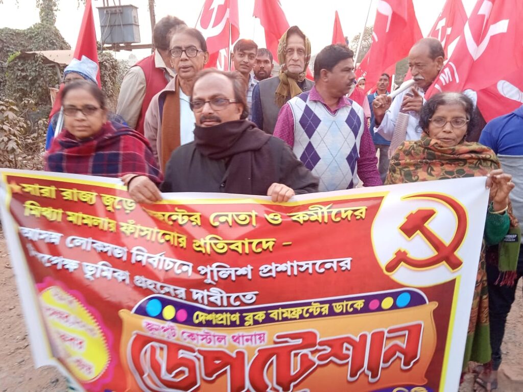 দাবী তোলে পথ সভায়। কাঁথি সুকুমার সেনগুপ্ত ভবন থেকে একটি মিছিল কাঁথি শহর পরিক্রমা করে থানায় ডেপুটেশন দেয় এবং পোস্ট অফিস মোরে একটি পথসভা করে । পথসভায় সভাপতিত্ব করেন কাঁথি এরিয়া কমিটির সম্পাদক , হরপ্রসাদ ত্রিপাঠী, বক্তব্য রাখেন জয়দেব পন্ডা, প্রণব পন্ডা, নীলরতন সাউথ, জগৎ প্রামাণিক আরএসপির পক্ষে শেখ হোসেন আলী। ডেপুটেশন দিতে যান বামফ্রন্টের পক্ষে কানাই মুখার্জি, বাসুদেব রাউল, হিমাদ্রি মাইতি ,তাপস অধিকারী প্রমুখ। বামফ্রন্টের নেতৃত্ব ,কর্মীদের নামে মিথ্যা মামলা। পুলিশের ষড়যন্ত্রমূলক কাজের বিরুদ্ধে এবং আগামী লোকসভা নির্বাচনে পুলিশের নিরপেক্ষ কাজের দাবিতে সারা জেলা জুড়ে থানায় থানায় ডেপুটেশন চলছে।