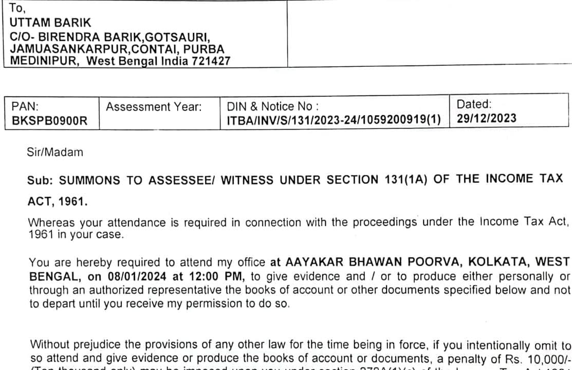 তৃনমূল নেতা সভাধিপাতি উত্তম বারিক জানিয়েছেন গত দুবছরের আয়ব্যয় সংক্রান্ত রিপোর্ট জমা দিতে বলেছে আয়কর দপ্তর।