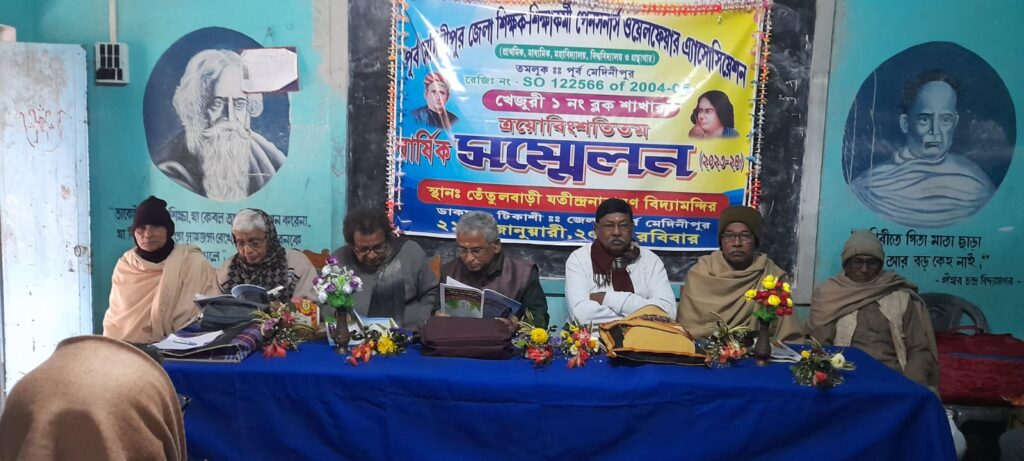 আজ পূর্ব মেদিনীপুর শিক্ষক অশিক্ষক পেনসনার্স ওয়েলফেয়ার এসোশিয়েসন এর বার্ষিক সাধারণ সম্মেলন অনুষ্ঠিত হয় তেঁতুলবাড়ী যতীন্দ্র নারায়ণ বিদ্যামন্দির এর সভাগৃহে।সভাপতিত্ব করেন সমিতির সভাপতি নগেন্দ্রনাথ পড়িয়া।অতিথি হিসাবে উপস্থিত ছিলেন জেলা কমিটির সভাপতি মন্মথনাথ দাস,কাঁথি মহকুমা শাখার সভাপতি অমলেন্দুবিকাশ জানা, সম্পাদক কৃষ্ণপদ পঞ্চধ্যায়ী,কৌস্তুকান্তি মাইতি,ঘনশ্যামগিরি,পার্থসারথি দাশ প্রমুখ।উপস্থিত ছিলেন সহ সভাপতি বৃন্দাবন দাস অধিকারী,বিবুধরঞ্জন আচার্য ,ড প্রবালকান্তি হাজরা, নিত্যরঞ্জন করণ, মহীতোষ বেরা,বলাইচন্দ্র দোলই, পরিতোষ খাটুয়া,অমল গোল,রাজবালা খাটুয়া,আনন্দবর্ধন বারিক, মৌসুমী মাইতি সহ প্রায় দেড় শতাধিক প্রতিনিধি।