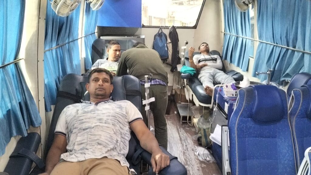 প্রদীপ কুমার সিংহ:-শীতের আমেজের চারিদিকে চড়ুইভাতুই আনন্দ উপভোগ করে। কিন্তু শীতকালে রক্তদান উৎসব হল বারুইপুর সহ বিভিন্ন জায়গায়। দক্ষিণ ২৪ পরগনা জেলা বারুইপুর থানা অন্তত বারুইপুর মলয়পুর নারায়ন তলায় এক স্বেচ্ছাসেবী সংগঠন সারথি সেবাতনের পরিচালনায় ডক্টর রাধা মাধব নস্করের উদ্যোগে স্বেচ্ছায় রক্তদান শিবির বিনামূল্যে চক্ষু পরীক্ষা চেস্ট পরীক্ষা ওয়া অন্যান্য স্বাস্থ্য পরীক্ষার শিবির হয়। ডক্টর রাধামাধব নস্করের সঙ্গে কথা বলে জানা যায় এই রক্তদান শিবির ও স্বাস্থ্য পরীক্ষার শিবির এ বছর প্রথম বছর। একটি বেসরকারি ব্লাড ব্যাংকের দ্বারা এখানে প্রায় ৮০ জন রক্তদাতা রক্ত দান করেন, ১০০ জন মানুষ তাদের চেস্ট পরীক্ষা করান ১১৫ জন, মানুষ তাদের চক্ষু পরীক্ষা করান। এখানে বিনামূল্যে চশমার ব্যবস্থা ও অপারেশনের ব্যবস্থা হয়। তিনি আরো বলেন এই অনুষ্ঠানে যে রাম সাড়া পাওয়া গেছে আগামী বছরে আরো এরকম অনুষ্ঠান করবে।