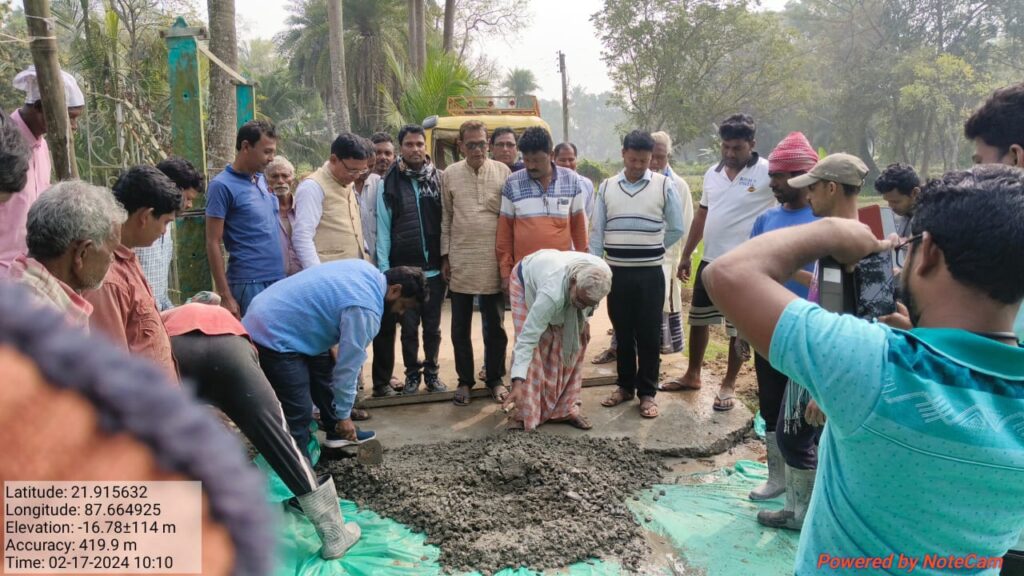 পূর্ব মেদিনীপুর জেলার পটাশপুর-২ ব্লকের আড়গোয়াল গ্রাম পঞ্চায়েতে সাতশতমাল মোক্তব বুথে প্রায় ৬৮ লক্ষ টাকা ব্যায়ে পথশ্রী -৩ প্রকল্পের মাধ্যমে ঢালাই রাস্তার কাজ শুরু হল ।