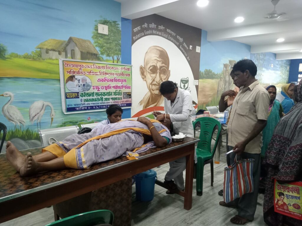 ভাজাচাউলি গ্রাম পঞ্চায়েত বিনামূল্যে চক্ষু পরীক্ষা শিবির রবিবার দেশপ্রান ব্লকের স্বেচ্ছাসেবী সংগঠন কাজলা জনকল্যাণ সমিতি ,ভাজাচাউলি গ্রাম পঞ্চায়েত যৌথ উদোগে এবং চৈতন্যপুর বিবেকানন্দ মিশন আশ্রম, চৈতন্যপুর, হলদিয়া পরিচালনায় ও অভিজ্ঞ চিকিৎসক ও অত্যাধুনিক যন্ত্রপাতি দ্বারা কাঁথি 3 ব্লকের ভাজাচাউলি গ্রাম পঞ্চায়েতের কক্ষে চক্ষু ও ছানী পরীক্ষা শিবির অনুষ্ঠিত হয়, এই পরীক্ষা শিবিরে ভাজাচাউলি, লাউ দা, কুমীরদা,দেবেন্দ্র গ্রাম পঞ্চায়েতের বিভিন্ন গ্রাম থেকে 174 জন চক্ষু পরীক্ষা করেন। এর মধ্যে 53 জন রোগী ছানী কেশ ধরা পড়ে। যাদের ছানী ধরা পড়েছে তাদের চৈতন্যপুরে গিয়ে বিনামূল্যে ছানী অপারেশন হবে। অভিজ্ঞ চিকিৎসা মন্ডলীর পক্ষে ছিলেন নিতানন্দ প্রামাণিক, পৌলমী সামন্ত, শামসুন্দর দাস,মিশনের পক্ষে ছিলেন দিলীপ প্রামানিক, মলয়কুমার দাস।