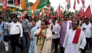 পূর্ব মেদিনীপুর জেলার কাঁথি বামফ্রন্ট -কংগ্রেসের জোট প্রার্থী ঊর্বশী ভট্টাচার্যের সমর্থনে মিছিল করলেন জোট কর্মীরা।