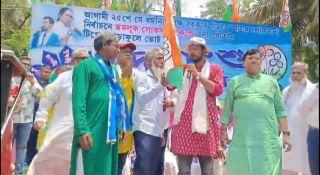 পূর্ব মেদিনীপুর জেলা সুতাহাটা ব্লকের বাসুলিয়া এলাকায় সিপিএম কর্মী শেখ আবুজার নেতৃত্বে মঙ্গলবার তমলুক লোকসভা কেন্দ্রের তৃণমূল প্রার্থী দেবাংশু ভট্টাচার্যের হাত থেকে তৃণমূলের পতাকা নিয়ে যোগদান করলেন বাম কর্মীরা।