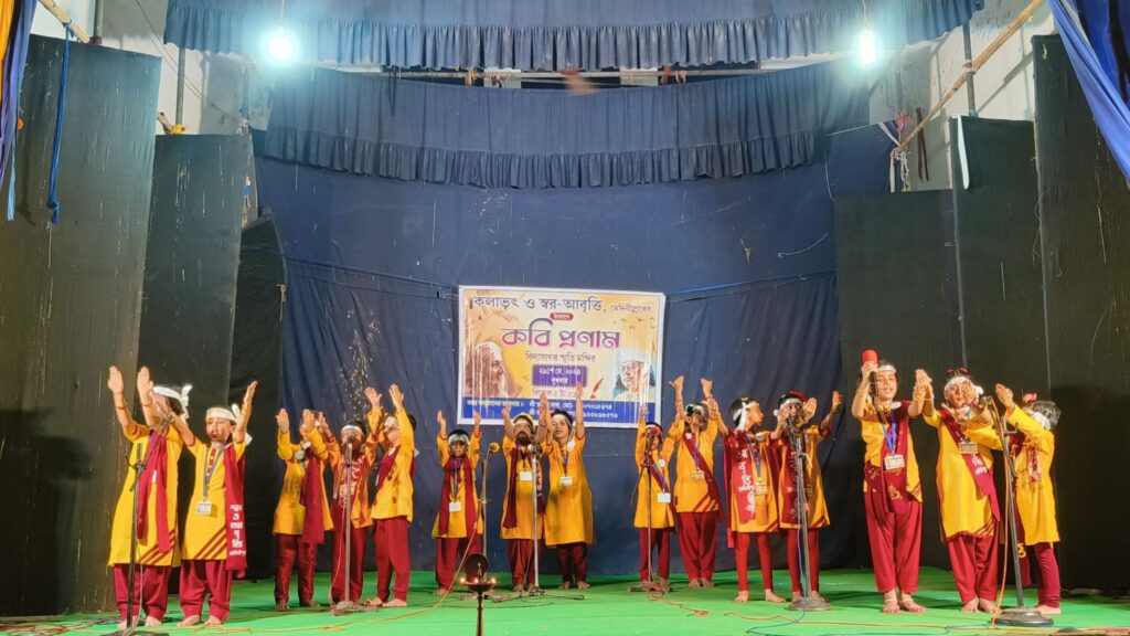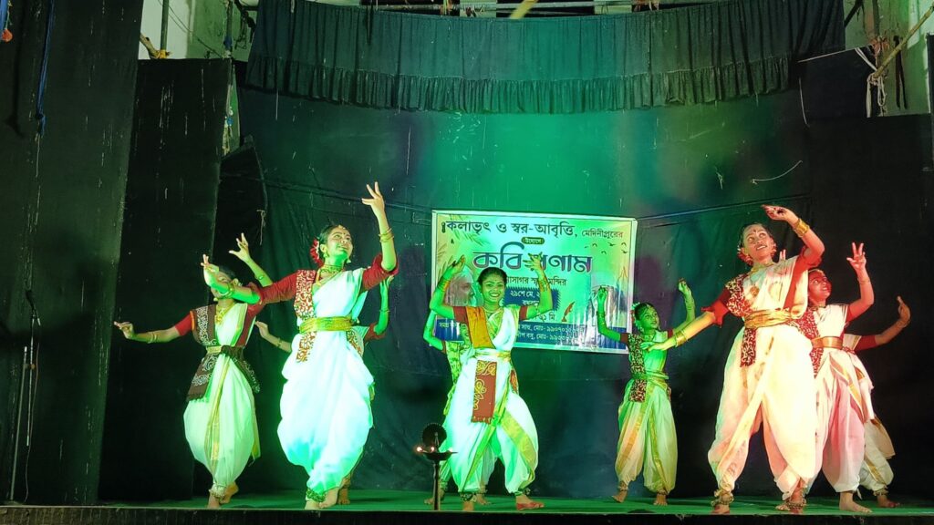 মেদিনীপুর শহরের বিদ্যাসাগর হলে স্বর – আবৃত্তি, মেদিনীপুর ও কলাভৃৎ এর আয়োজনে কবি প্রণাম অনুষ্ঠান অনুষ্ঠিত হলো। দুই সংস্থার দুই শতাধিক ছাত্র-ছাত্রী এতে অংশগ্রহণ করেছে। রবীন্দ্র নজরুল নৃত্য,একক ও দ্বৈত কবিতার সমাহারে সেজে উঠেছিল অনুষ্ঠান। প্রদীপ প্রজ্জ্বলন করে অনুষ্ঠানের শুভারম্ভ করেন বিদ্যাসাগর বিশ্ববিদ্যালয়ের দুই অধ্যাপক তারকনাথ সাহু, নিবেদিতা ভট্টাচার্য ও সহকারী বিদ্যালয় পরিদর্শক সৌমেন ঘোষ মহাশয়। আবৃত্তির কোলাজ “ছোটদের নজরুল” “রবি ঠাকুরের মা “ও “অন্য রবীন্দ্রনাথ “সকলে নজর কাড়ে। ক্ষুদে শিল্পীদের নানা অনুষ্ঠান সকলের মন ছুঁয়ে যায়। প্রসঙ্গত কিছুদিন আগে স্বর আবৃত্তির উদ্যোগে কবি প্রণামের উদ্দেশ্যে বৃক্ষরোপণ করে সংস্থার সকল ছাত্র-ছাত্রীরা। প্রায় একশোর কাছাকাছি গাছ লাগায় ছাত্রছাত্রীরা। স্বর -আবৃত্তির কর্ণধার শুভদীপ বসু জানান “আমাদের ছাত্রছাত্রীরা কবি প্রণাম এর উদ্দেশ্যে প্রত্যেকেই একটি গাছকে বড় করার সংকল্প নিয়েছে ।