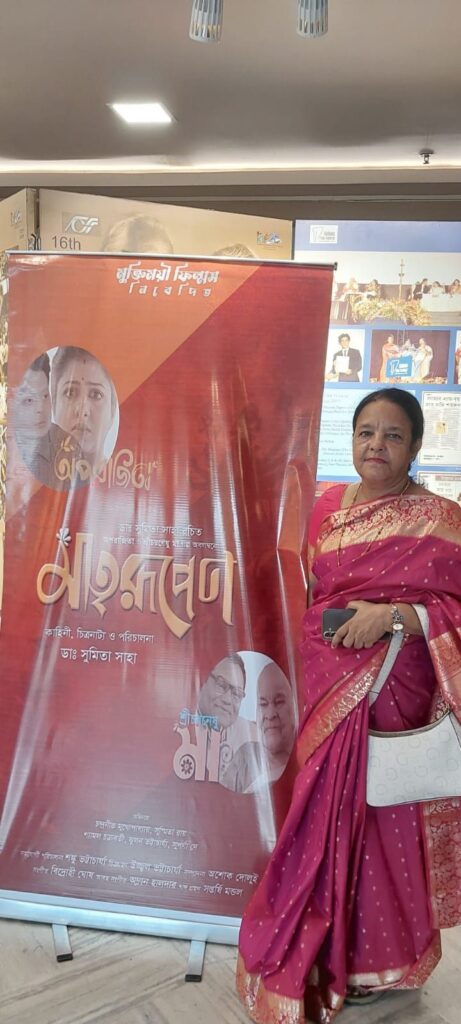 ইন্দ্রজিৎ আইচ :-আজ নন্দনে মুক্তি পেলো ডা: সুমিতা সাহার প্রথম পরিচালিত ছবি ” মাতৃরূপেন “। এই ছবিটি মূলত নারী শক্তি কে কেন্দ্র করে তৈরি হয়েছে। মুক্তিময়ী ফিল্মস নিবেদিত এই মাতৃরূপেন ছবি টি তে দুটি গল্প আছে। প্রথমটি “অপরাজিতা”। এই ছবির সময় সীমা ৪০ মিনিট। পরের ছবি ” শ্রী চারণেশু মা “। এই ছবিটি দেড় ঘণ্টার। পরিচালক ডা: সুমিতা সাহার পরিচালনায়