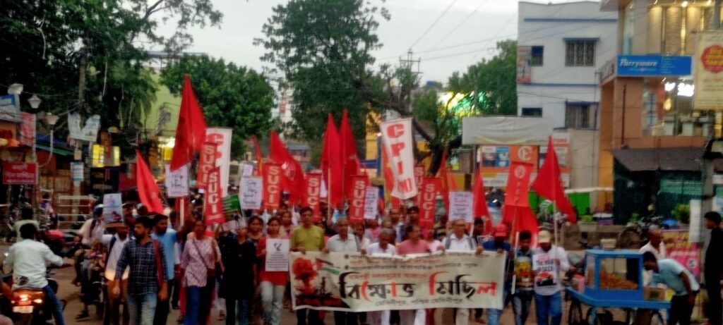 প্যালেস্তাইনে বিশেষ করে গাজা ভূখন্ডে মার্কিন মদতে লাগাতার ইজরায়েলি আক্রমণের বিরুদ্ধে মেদিনীপুরে বিক্ষোভ বিছিলে সামিল হলো বামপন্থী দল সমূহ। মঙ্গলবার বিকেলে মেদিনীপুর শহরের বিদ্যাসাগর স্মৃতি মন্দির প্রাঙ্গণ থেকে এই মিছিল শুরু হয়ে বটতলা চক,কেরানীতলা, এল আই সি মোড়, গান্ধী মোড় হয়ে পুনরায় বিদ্যাসাগর হল ময়দানে এসে শেষ হয়। মিছিলে নেতৃত্ব দেন সুশান্ত ঘোষ,বিজয় পাল, কীর্তি দে বক্সী, অশোক সেন,সুকুমার সিং, জয়ন্ত পাত্র, প্রাণতোষ মাইতি, নিরঞ্জন মহাপাত্র,সমর মুখার্জি জয়দীপ খাটুয়া,দিলীপ সাউ ,সৌগত পন্ডা, পাপিয়া চৌধুরী,গোপাল প্রামাণিক, দেবাশিষ আইচ, প্রমুখ বাম নেতৃত্ব