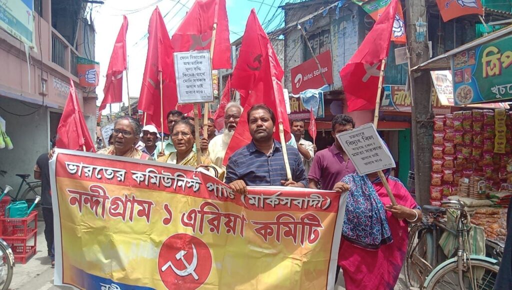 মোবাইল ফোন রিচার্জের মূল্য বৃদ্ধি, বিদ্যুৎ র মাশুল বৃদ্ধি, নিত্য প্রয়োজনীয় জিনিসপত্রের অস্বাভাবিক মূল্য বৃদ্ধি, পুনর্বাসন-ক্ষতিপূরণ ছাড়া হকার উচ্ছেদের প্রতিবাদে নন্দীগ্রাম বাজারে বামফ্রন্টের ডাকে বিক্ষোভ মিছিল হয়।