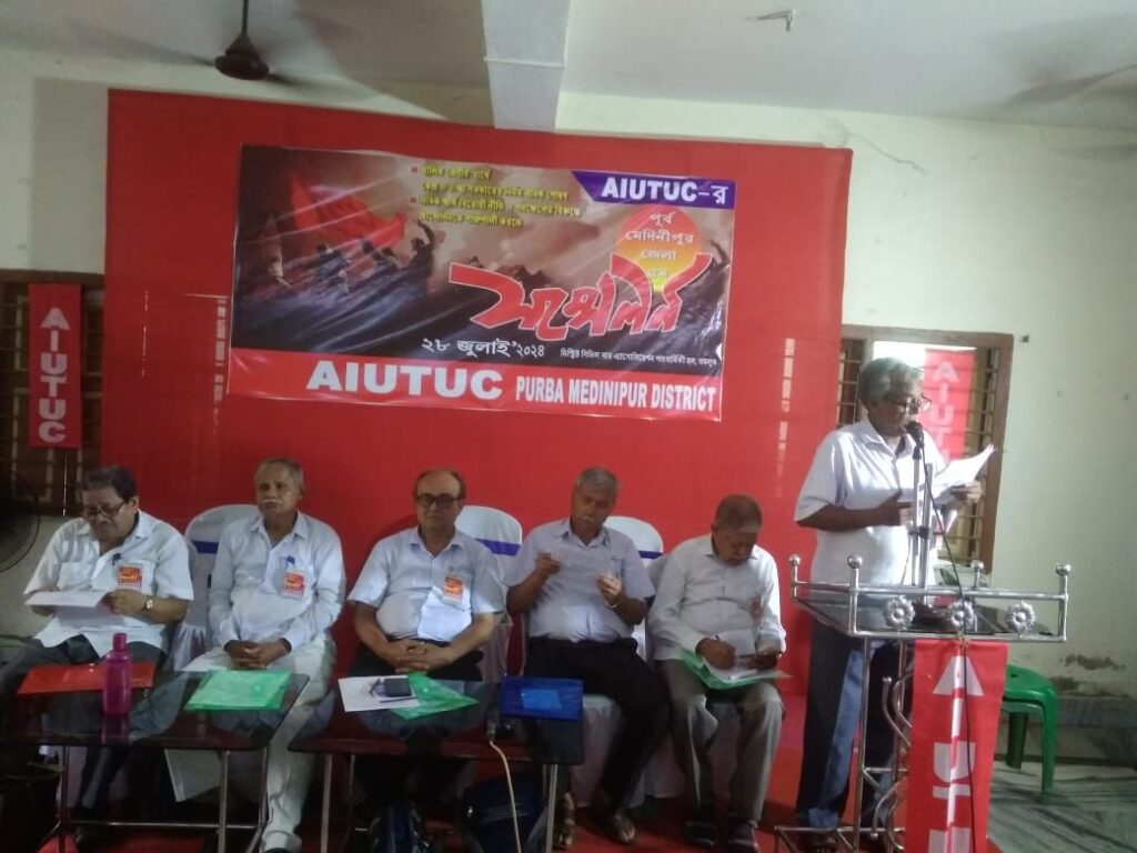 । কিন্তু স্বাধীন ভারতবর্ষে সেই দাবী পূরণ হয়নি। আজ সারা দেশ জুড়ে চলছে বেসরকারীকরণের জোয়ার। চলছে লে-অফ, লকআউট, ছাঁটাই। স্থায়ী কাজে স্থায়ী শ্রমিক নেই। কন্ট্রাকচুয়াল- ক্যাজুয়াল কর্মী দিয়ে অল্প পয়সায় বেকার যুবকদের কাজ করিয়ে নেওয়া হচ্ছে। কেন্দ্রীয় সরকার ৪২ টি শ্রম আইন পরিবর্তন করে ৪ টি শ্রম-কোডের মাধ্যমে শ্রমিকদের অর্জিত অধিকারগুলি কেড়ে নিচ্ছে। সম্মেলন থেকে মধুসূদন বেরাকে সম্পাদক ও সমরেন্দ্রনাথ মাজীকে সভাপতি করে ৪০ জনের শক্তিশালী জেলা কমিটি গঠিত হয়। পরিশেষে নির্বাচিত নতুন জেলা কমিটি কেন্দ্র ও রাজ্য সরকারের বিভিন্ন পদক্ষেপ ও নীতির বিরুদ্ধে ঐক্যবদ্ধ শ্রমিক আন্দোলন গড়ে তোলার শপথ গ্রহণ করেন এবং আগামী ১৫- ১৬ নভেম্বর শিলিগুড়িতে রাজ্য সম্মেলন সফল করার আহ্বান জানান।