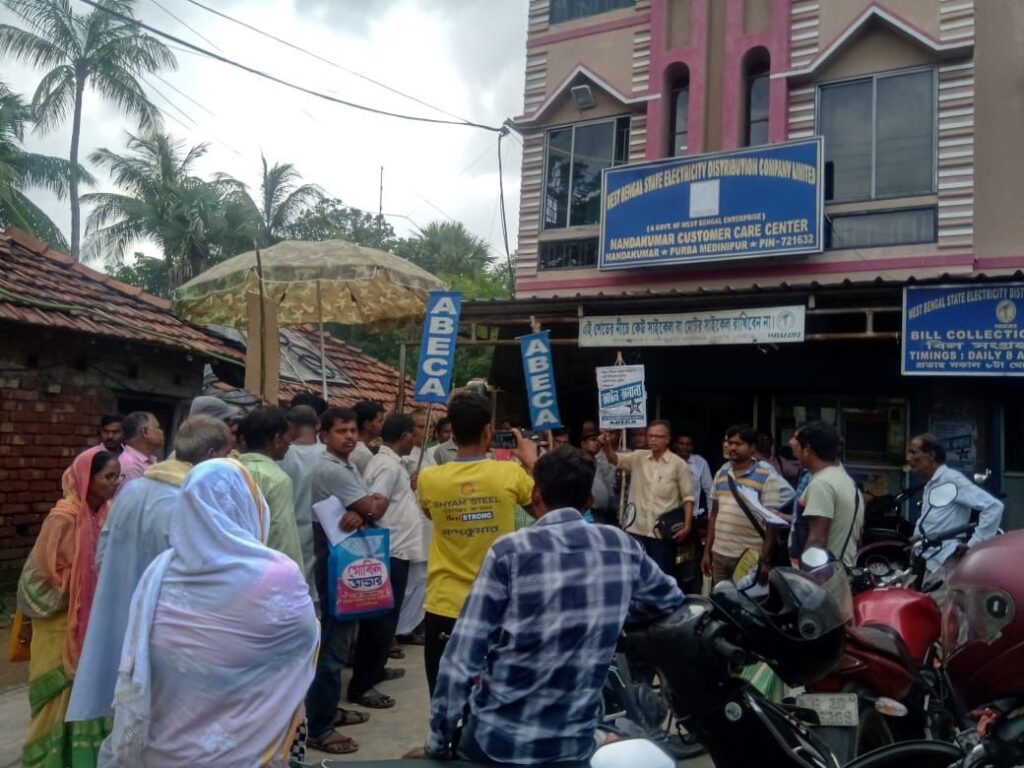 বিদ্যুৎ গ্রাহকদের কানেকশনের লোড বৃদ্ধির নাম করে গ্রাহকদের কাছ থেকে বিরাট অঙ্কের টাকা আদায় বন্ধ সহ স্মার্টলি টাকা লুটের যন্ত্র স্মার্ট মিটার লাগানো প্রতিরোধ প্রভৃতি দাবীতে আজ বিদ্যুৎ গ্রাহকদের সংগঠন অল বেঙ্গল ইলেকট্রিসিটি কনজিউমার্স অ্যাসোসিয়েশন (অ্যাবেকা)’র নন্দকুমার কাস্টমার কেয়ার সেন্টার কমিটির উদ্যোগে স্টেশন ম্যানেজার অফিসে বিক্ষোভ প্রদর্শন করা হয়। এবং স্টেশন ম্যানেজারকে পাঁচ দফা দাবী সম্বলিত স্মারকলিপি ও ডেপুটেশন দেওয়া হয়।