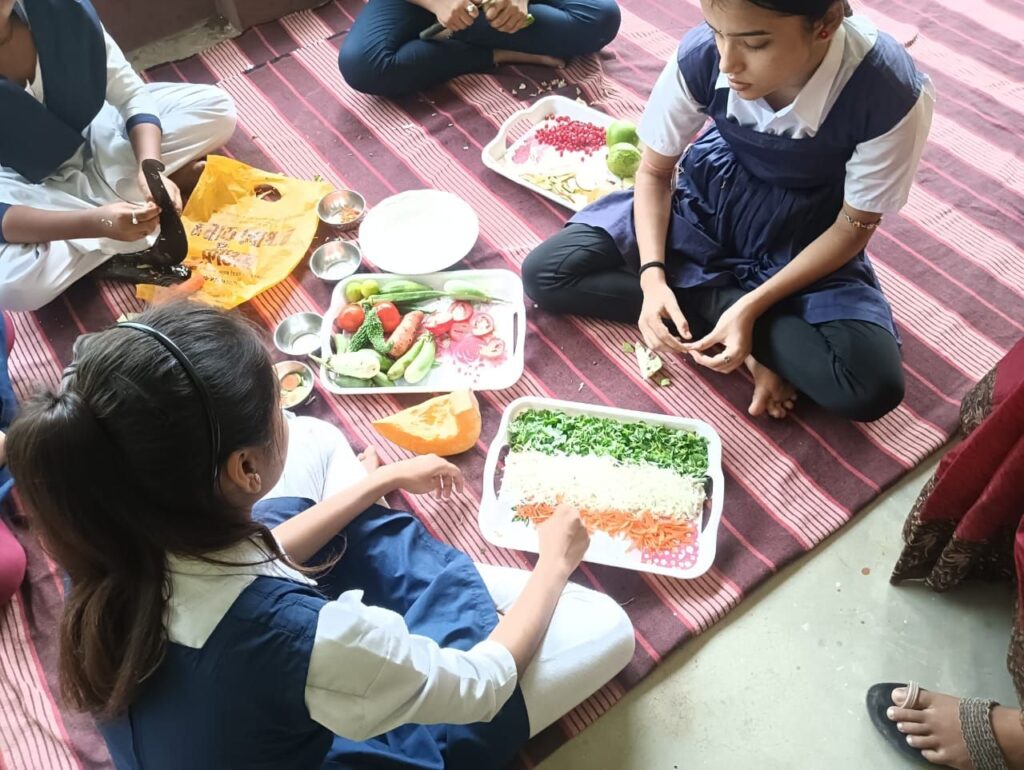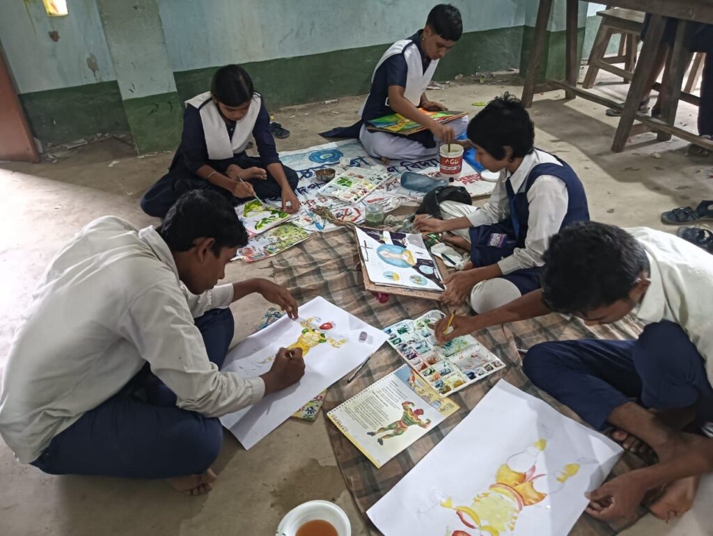 ছাত্র-ছাত্রীরা বিভিন্ন ধরনের সচেতনতা বার্তা, ছবি অংকন ও সুষম খাবারের থালা তৈরি করে।