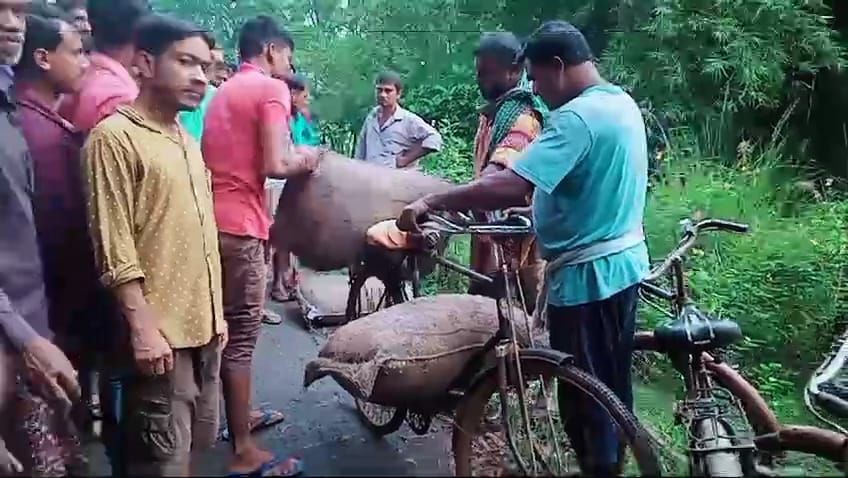 পূর্ব মেদিনীপুর জেলার পটাশপুর এক নম্বর ব্লকের ব্রজলালপুর গ্রাম পঞ্চায়েত ও দু নম্বর ব্লকের শ্রীরামপুর গ্রাম পঞ্চায়েতের সংযোগস্থল শ্রীরামপুর ও দক্ষিণ রাউতারা গ্রামের মাঝের একটি খালে রবিবার সকালে এফসিআই এর লোগো লাগানো বস্তা বস্তা চাল পড়ে থাকতে দেখেন স্থানীয় মানুষজন।