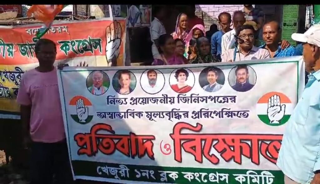 প্রদেশ কংগ্রেসের ঘোষিত কর্মসূচি অনুযায়ী পূর্ব মেদিনীপুর জেলা জুড়ে বিভিন্ন বাজারে নিত্যপ্রয়োজনীয় জিনিসপত্রের অস্বাভাবিক মূল্যবৃদ্ধির প্রতিবাদে আজ সকাল ৮ টা ৩০ মিনিট থেকে ৯টা ৩০ মিনিট পর্যন্ত বিক্ষোভ কর্মসূচি পালন করা হয়।