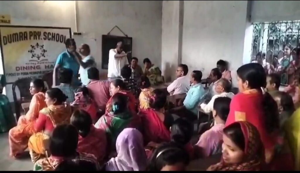 তমলুকের শহীদ মাতঙ্গিনী ব্লকের অন্তর্গত ডুমরা প্রাথমিক বিদ্যালয়। শিশু শ্রেণী থেকে শুরু করে পঞ্চম শ্রেণি পর্যন্ত এই স্কুলের ছাত্র-ছাত্রী সংখ্যা প্রায় ১৭৮জন। এবং শিক্ষক শিক্ষিকা সংখ্যাও প্রায় ৬ জন। প্রায় বছর খানেক ধরেই এই স্কুলের মিড ডে মিলে ব্যাপকভাবে দুর্নীতি চলছে বলে অভিযোগ। আর এই অভিযোগের আঙুল উঠেছে খোদ স্কুলের প্রধান শিক্ষিকার বিরুদ্ধে। রীতিমতো তথ্য সহ ওই স্কুলের শিক্ষিকার বিরুদ্ধে জেলা শাসকের দপ্তরে গিয়ে অভিযোগ জানিয়েছিলেন ক্ষুব্ধ বাসিন্দারা। ব্যাপক হারে দুর্নীতি নিয়ে স্কুলের প্রধান শিক্ষিকার সঙ্গে সহ স্কুল শিক্ষক শিক্ষিকাদেরও মতবিরোধ চরম আকার ধারণ করে। প্রধান শিক্ষিকার বিরুদ্ধে গুরুতর এমন অভিযোগ পেয়েই নড়ে চড়ে বসেছে প্রশাসনও। ইতিমধ্যেই স্কুলে গিয়ে একাধিকবার মিড ডে মিল সংক্রান্ত বিষয় নিয়ে সারপ্রাইজ ভিজিটও শুরু হয় প্রশাসনের পক্ষ থেকে। বিষয়টি রীতিমতো সংবাদের শিরোনামে চলে আসায় আরো ক্ষোভ হয় অভিভাবকদের মধ্যে। এর জেরে বিগত প্রায় সপ্তাহখানেক ধরে গ্রামবাসীদের বাধায় ওই স্কুলে এসেও ফিরে যেতে বাধ্য হন অভিযুক্ত প্রধান শিক্ষিকা।