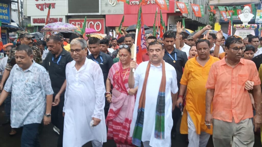 সাম্প্রতি এই রাজ্যে আর. জি. কর সহ কসবা “ল” কলেজে ধর্ষনের প্রতিবাদে রবিবার বিকালে পূর্ব মেদিনীপুর জেলার কাঁথিতে কন্যা সুরক্ষা যাত্রা কর্মসূচী পালন করলো বিজেপি । প্রাকৃতিক দুর্যোগ উপেক্ষা করে অনুষ্ঠিত এই কর্মসূচীতে অংশ গ্রহণ করেন রাজ্য বিধানসভার বিরোধী দলনেতা শুভেন্দু অধিকারী।