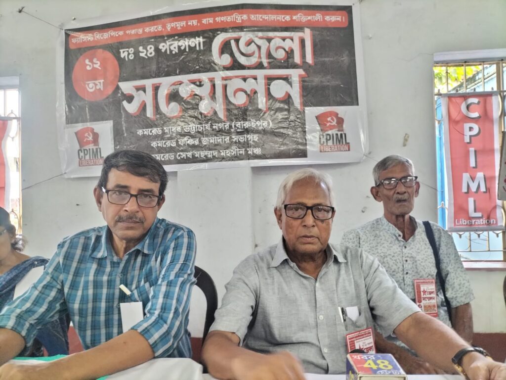 সি পি আই এম এল লিবারেশন পার্টির পক্ষ থেকে জেলার সম্মেলন হল রবিবার দক্ষিণ ২৪ পরগনা জেলার বারুইপুর থানার অন্তর্গত দক্ষিণ ২৪ পরগনা ক্রিয়া অ্যাসোসিয়েশনের ভবনে। এই জেলা সম্মেলনে উপস্থিত ছিলেন সি পি আই এম এল এ সর্বভারতীয় পলিট ব্যুরো নেতা কার্তিক পাল সহ দক্ষিণ ২৪ পরগনা এই পার্টি সভাপতি সম্পাদক ও অন্যান্য সদস্যবৃন্দ। এই সম্মেলন শুরু হয় সকাল দশটার সময় তা চলে বিকাল ৫ টা পর্যন্ত। মূলত এই সম্মেলনে আলোচনা হয় খাদ্য আন্দোলনে সময় মানুষ কিভাবে শহীদ হয়েছিল সেইসঙ্গে ভারতে নির্বাচন কমিশন পশ্চিমবাংলায় যে এস আই আর করার চেষ্টা করছে তার প্রতিবাদে মুখরিত হয় নেতারা। ভোটার তালিকা ভুতুড়ে ভোটারের নাম নিয়ে নির্বাচন কমিশন যে দায়ী তার বিরুদ্ধে প্রতিবাদ করা সহ দ্রব্যমূল্য বৃদ্ধির প্রতিবাদে এবং বাংলার বাইরে বিজেপি শাসিত রাজ্যে বাংলার কথা বলার বাঙ্গালীদের অত্যাচারে বিরুদ্ধে আলোচনা হয়। আগামী নভেম্বর মাসে রাজ্য সম্মেলন হবে পলিট ব্যুরোর নেতা কার্তিক পাল বলেন। সেই সঙ্গে আরো বলেন সারা ভারতবর্ষে বিজেপি পরিচালিত কেন্দ্রীয় সরকার যে অত্যাচার চালাচ্ছে প্রতিটা রাজ্যের দমন পিরণ করে নিজেদের অধীনে নিয়ে যাওয়ার আবার পরিকল্পনা নিয়েছে, সংসদে যে বিল নিয়ে এসেছে ৩০ দিন জেল খাটার পর মুখ্যমন্ত্রী মন্ত্রী ও প্রধানমন্ত্রী সেই পথ হারাবেন তার বিরুদ্ধে জনগণকে সচেতন করতে তারা পথে নামবে। এই বিল কিছুতেই মানা সম্ভব নয়। বিজেপি পরিচালিত রাজ্য গুলি তে যে প্রধানমন্ত্রী বিরুদ্ধে কথা বললে তার পিছনে কেন্দ্রীয় সংস্থা সিবিআই ,ED লাগিয়ে দিচ্ছে। যেকোনো প্রকারে প্রধানমন্ত্রী নরেন্দ্র মোদি স্বরাষ্ট্রমন্ত্রী অমিত সাহার বিরুদ্ধে কোন বিরোধী রাজনৈতিক নেতা কথা বলতে পারবে না তার বিরুদ্ধে কেন্দ্রীয় সরকারের অধীন সিবিআই লেলিয়ে দেওয়া হয়। আগামী ১লা সেপ্টেম্বর ধর্মতলায় বামফ্রন্টের সঙ্গে মিছিল ও ধিক্কারের ডাক দেয়। দুপুর দুটোর সময় ধর্মতলায় সমাবেশে হবে খাদ্য আন্দোলন ও স্টুডেন্ট আন্দোলনে সমর্থনে। রাজ্য সম্মেলন শেষ হয়ে যাওয়ার পর বারুইপুর হাসপাতাল সামনে থেকে বারুইপুর রেলগেট হয়ে থানা হয়ে বারুইপুর রেল ময়দান পর্যন্ত একটি মিছিল করে এই রাজনৈতিক পার্টির পক্ষ থেকে। প্রায় দু কিলোমিটার রাস্তা পদব্রজে মিছিল করে।