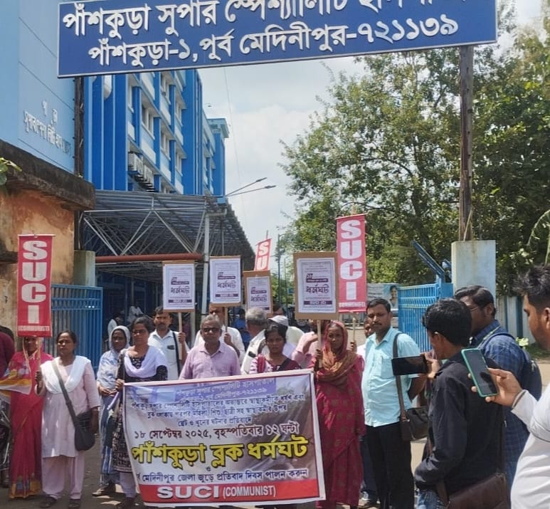 আগামীকাল পাঁশকুড়া ব্লকে ১২ ঘণ্টার বনধ্ এর সমর্থনে ব্লক জুড়ে এসইউসিআই দলের প্রচার ও বিক্ষোভ