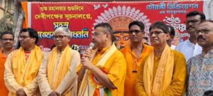 বিশেষ অতিথি হিসেবে উপস্থিত ছিলেন রাজ্যের বিরোধী দলনেতা শুভেন্দু অধিকারী। তিনি মহালয়ার তাৎপর্য ব্যাখ্যা করতে গিয়ে বলেন, “আজ সহস্র শঙ্খধ্বনির মাধ্যমে দেবীপক্ষের সূচনা হলো।” তবে বক্তব্যের সুর দ্রুত পাল্টে গিয়ে শাসক দলের দিকে আঙুল তোলেন তিনি। নাম না করে মুখ্যমন্ত্রীকে কটাক্ষ করে বলেন, “পিতৃপক্ষে হিজাব পরে যাঁরা দুর্গাপুজোর মণ্ডপ উদ্বোধন করেন, তাঁরা আসল হিন্দু নন। তাঁরা চাইছেন হিন্দু সমাজে বিভেদ তৈরি করতে। কোথাও বিহারী-বাঙালি বলে, কোথাও আবার পশ্চিমবঙ্গের বাঙালি বলে মানুষকে আলাদা করার চেষ্টা চলছে। কিন্তু এই কৌশল কোনোদিন সফল হবে না।”