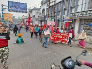 কাজ হারানোর আশঙ্কায় ,শ্রম কোড বাতিলের বিরোধিতা করে কাঁথি সুকুমার সেনগুপ্ত ভবন থেকে কাঁথি পৌর কর্মচারী ইউনিয়ন, ডব্লু বি এম এস আর ইউ, কাঁথি বাজার কর্মচারী, ১২ ই জুলাই কমিটি সহ বিভিন্ন শ্রমিক সংগঠনের কয়েকশ শ্রমজীবী অংশের মানুষের মিছিল কাঁথি সুপার মার্কেট, রাজাবাজার,ক্যানেল পাড়, কালটেক্স মোড, কাঁথি থানা হয়ে পোস্ট অফিসের সামনে জড়ো হয়ে পথসভা করে।