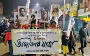 “জাগো নারী,জাগো বহ্নিশিখা”র ব্যানারে রাজ্যজুড়ে ক্রমাগত নারী নির্যাতনের বিরুদ্ধে ৯ থেকে ১৬ই ডিসেম্বর ডাক দেওয়া হয়েছে ‘অঙ্গীকার যাত্রা’। এই কর্মসূচির শুরুতে আজ ৯ ডিসেম্বর মহীয়সী নারী বেগম রোকেয়ার জন্ম ও মৃত্যুদিনে পূর্ব মেদিনীপুর জেলার পাঁশকুড়া,ভোগপুর,কোলাঘাট,মেচেদা,তমলুক,নোনাকুড়ি,হলদিয়া প্রভৃতি স্থানে প্রতিবাদী সাংস্কৃতিক অনুষ্ঠান,পদযাত্রা ও মশাল মিছিল অনুষ্ঠিত হয়। কর্মসূচিতে বক্তব্যের পাশাপাশি গান-আবৃত্তি-পথনাটিকা পরিবেশিত হয়।