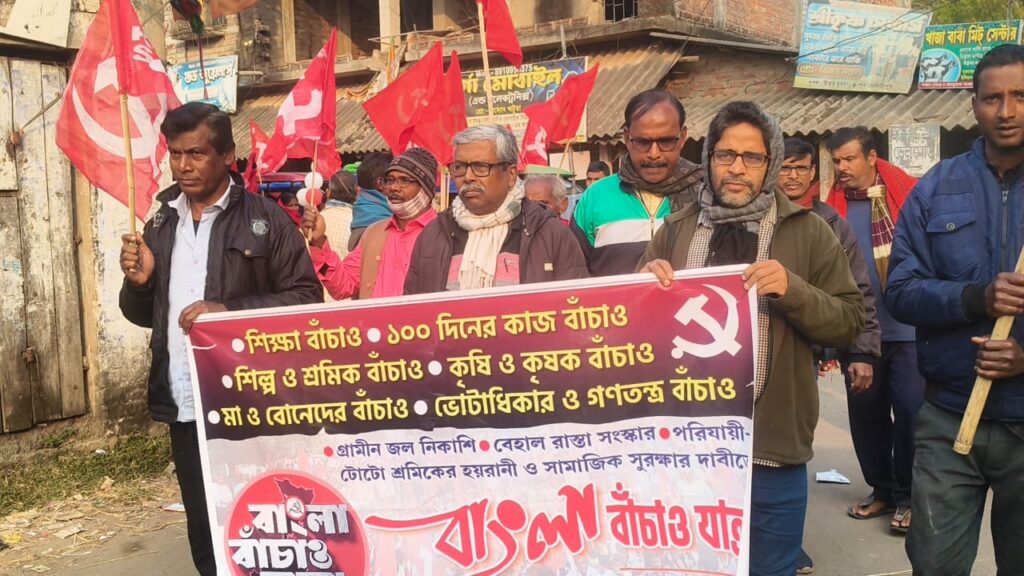 পশ্চিমবঙ্গে গণতন্ত্র রক্ষার দাবিতে রাজ্যজুড়ে ‘বাংলা বাঁচাও যাত্রা’ কর্মসূচি গ্রহণ করল বামফ্রন্ট। শনিবার পূর্ব মেদিনীপুর জেলার এগরা ২ ব্লকের বালিঘাই এরিয়া কমিটির উদ্যোগে ব্যাপকভাবে আয়োজিত হলো এই পদযাত্রা ও র্যালি। এদিন এগরা ২ ব্লকের দুবদা গ্রাম পঞ্চায়েতের অন্তর্গত সমস্ত বুথ এলাকাতেই সিপিআইএমের পক্ষ থেকে ‘বাংলা বাঁচাও যাত্রা’ অনুষ্ঠিত হয়।