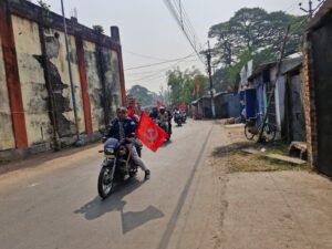 শ্রমিকের কাজ কেড়ে নেওয়া যাবে না ।শ্রম কোড বাতিল করতে হবে। ৮ ঘণ্টার পরিবর্তে ১২-১৪ ঘন্টা কাজ করানো যাবে না। সাধারণের শিক্ষাকে গুরুত্ব দিতে হবে ।এইসব দাবি ও স্থানীয় দাবি নিয়ে পূর্ব মেদিনীপুর জেলা জুড়ে বিভিন্ন এলাকায় পদযাত্রা সমাবেশ সংঘটিত হচ্ছে। একইভাবে আজ পূর্ব মেদিনীপুর জেলার কাঁথি শহর এরিয়া কমিটির উদ্যোগে কাঁথি শহরের ২১ টি ওয়ার্ডের প্রতিটি বুথ ছুঁয়ে যায় মোটরসাইকেলের র্যালি। প্রায় ১৬ কিলোমিটার রাস্তা অতিক্রম করে বাংলা বাঁচাও যাত্রার ট্যাবলো এবং মোটর সাইকেলের র্যালি। শহরের বিভিন্ন গঞ্জ এবং এলাকায় ছোট পথসভা ও হয়। এই রেলিতে নেতৃত্ব দেন পার্টির জেলা কমিটির সদস্য কানাই মুখার্জি, কাঁথি এরিয়া কমিটির সম্পাদক দীপক প্রধান ,পার্টি নেতৃত্ব প্রণব পন্ডা ,শ্রমিক নেতা জয়দেব পন্ডা, যুব নেতা অর্ণব মাইতি ,বিশ্বনাথ রায় প্রণবেশ মাইতি , উদ্বাস্তু নেতা মানিক জানা,শিক্ষক সৌমিত্র সাহু, নবকুমার প্রধান প্রমূখ।