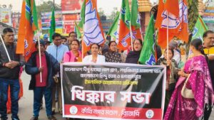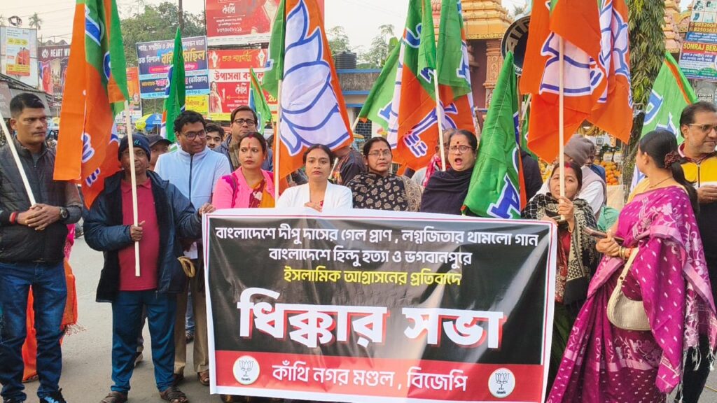 বুধবার বিকেলে কাঁথি শহরের ক্যানেলপাড় এলাকায় আয়োজিত এই প্রতিবাদ কর্মসূচিতে বিজেপির শতাধিক কর্মী-সমর্থক অংশ নেন। মিছিল শেষে পথসভায় বক্তারা বাংলাদেশে হিন্দুদের উপর নির্যাতন ও হত্যার ঘটনায় তীব্র নিন্দা জানান এবং অবিলম্বে দোষীদের বিরুদ্ধে কঠোর ব্যবস্থা গ্রহণের দাবি তোলেন।