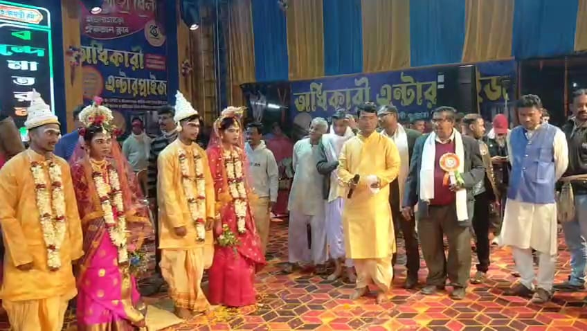 গণবিবাহের মঞ্চে অগ্নিকে সাক্ষী রেখে তিন জোড়া নবদম্পতি বিবাহবন্ধনে আবদ্ধ হন। নব দম্পতিদের চার হাত এক করার দায়িত্ব পালন করে মঙ্গলামাড়ো ঐকতান ক্লাব পরিচালিত মঙ্গলামাড়ো মেলা কমিটি। মঙ্গলামাড়ো মেলা মানেই ঐতিহ্যবাহী গণবিবাহ—এই প্রথা বজায় রেখে এবছর পশ্চিম মেদিনীপুর জেলার তিন জোড়া নবদম্পতির শুভ পরিণয় সম্পন্ন হয়।