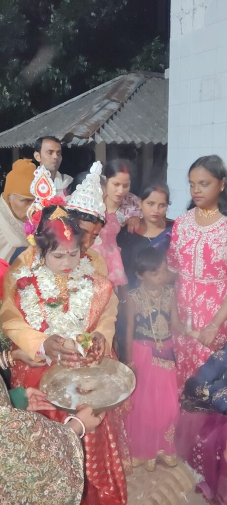 কথায় বলে, “কেউ নেই যার, ভগবান আছেন তার”। এটি বাংলার প্রবাদ যা নিঃসহায় মানুষের ভরসা সৃষ্টিকর্তা বা ঈশ্বরের। এমনই একটি ঘটনার সাক্ষী থাকলো পূর্ব মেদিনীপুর জেলার পটাশপুরবাসীরা। অসহায় পরিবারের পাশে দাঁড়ালো গোটা গ্রাম। যে এই কাহিনীর মূল চরিত্র তার মা কিছুটা বিকৃত মস্তিষ্কের, পথে পথে ঘুরে বেড়ায়, ভিক্ষা করে। দিনের শেষে বাড়ি ফেরে কুড়িয়ে আনা, চেয়ে আনা শাক- সবজি -চাল -ডাল সঙ্গে নিয়ে, কোনোদিন হয়তো কিছু আসেও না। মেয়েটির বাবা প্রয়াত হয়েছেন প্রায় বছর পনেরো আগে। তাই অতি অল্প বয়স থেকেই এই মেয়েকেই পড়াশোনার সাথে সাথে সংসার দেখাশোনা করতে হতো পুরোদমে। রেশন তোলা থেকে শুরু ক’রে ডাক্তার দেখানো যাবতীয় কাজ করতে হতো তাকে। ভালো নম্বর পেয়ে মাধ্যমিক পাশ করবার পরও সুমিতা সিং-এর হারিয়ে যায় মেধা। আর পড়াশোনা করা হয়ে ওঠেনি। সংসারের খরচ সামলাতে দাদা প্রথম দিকে দিন মজুরের কাজ করতো, পরে কলকাতায় পাড়ি দেয বেশি উপার্জন লক্ষ্যে। এবার সুমিতার বিয়ে দিতে হবে, বয়স তো হলো ১৮ বছর। কিন্তু অতি সামান্য উপার্জন, যাতে দিন গুজরান হয় না। এই রকম অবস্থায় বিয়ের তোড়জোর শুরু করলো দাদা। কিন্তু খরচ তো কিছু লাগবে। এই খবর ছড়িয়ে পড়তেই গ্রাম থেকে একের পর এক আশ্বাস নিয়ে পাশে এসে দাঁড়ালেন সাধারণ মানুষজন। গ্রামের প্রত্যেক শুভানুধ্যায়ী ব্যক্তি সহযোগিতার হাত বাড়িয়ে দাঁড়ালেন ‘বোন দায়গ্রস্ত’ দাদাকে । সবাই নিজের মতো করে সাহায্য করলেন। ছাতা , জুতো, শাড়ি, সোনা-রূপার গহনা থেকে শুরু করে সহযোগিতাই করলেন গ্রামের মানুষজন। সাহায্যের হাত বাড়িয়ে দিল এলাকার স্বেচ্ছাসেবী সংস্থা ‘দক্ষিণ খাড় স্টার ক্লাব’। প্রসঙ্গত উল্লেখ্য এই সুমিতার মাধ্যমিক পর্যন্ত পড়াশোনার একটা বিরাট দায়িত্বও সামলেছিল এই ক্লাব । পূর্ব খাড় গ্রাম কমিটি, খাড় নেতাজী সংঘ সহ ওই গ্রামের বহু মানুষ বিশেষভাবে সহযোগিতা করলেন সুমিতার বিয়েতে। মঙ্গলবার রাতে বিয়ে হয়ে গেল মেয়েটির। পূর্ব মেদিনীপুর জেলার পটাশপুরের পূর্ব খাড় গ্রামে সুমিতার বাড়ি। পশ্চিমবঙ্গ সরকারের ‘রূপশ্রী’ প্রকল্পের ২৫০০০ টাকা প্রাপ্তির আবেদন পত্র ও প্রয়োজনীয় তথ্য নিয়ে বি ডি ও অফিসে ছুটে গেছেন পূর্ব খাড় গ্রাম পঞ্চায়েতের সদস্য নারায়ণ কামিল্যা। গ্রাম কমিটির সম্পাদক চন্দন জানা, সভাপতি তারকান্ত মিশ্র, কোষাধ্যক্ষ নরনারায়ণ দাস, খাড় ৩ নম্বর অঞ্চলের প্রাক্তন প্রধান তথা প্রাক্তন শিক্ষিকা মালতী আচার্য্য প্রমুখ সহযোগিতা সহযোগিতা সহ গ্রামের মন্দির প্রাঙ্গণে এই বিবাহ অনুষ্ঠানে উপস্থিত ছিলেন।
