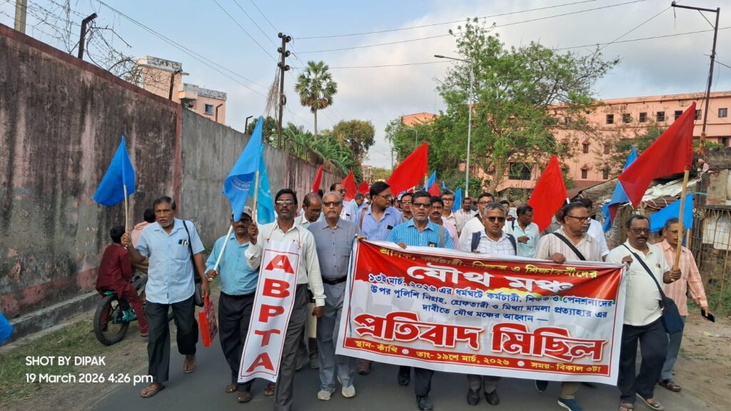 প্রতিবাদ মিছিলে সামনের সারিতে আজ ও দেখা গেল সেই আক্রান্ত শিক্ষক, পেনশনার, মিথ্যা মামলায় অভিযুক্ত পেসমেকার বসানো ৮৫ বছরের বৃদ্ধ সহ ১১ জন।