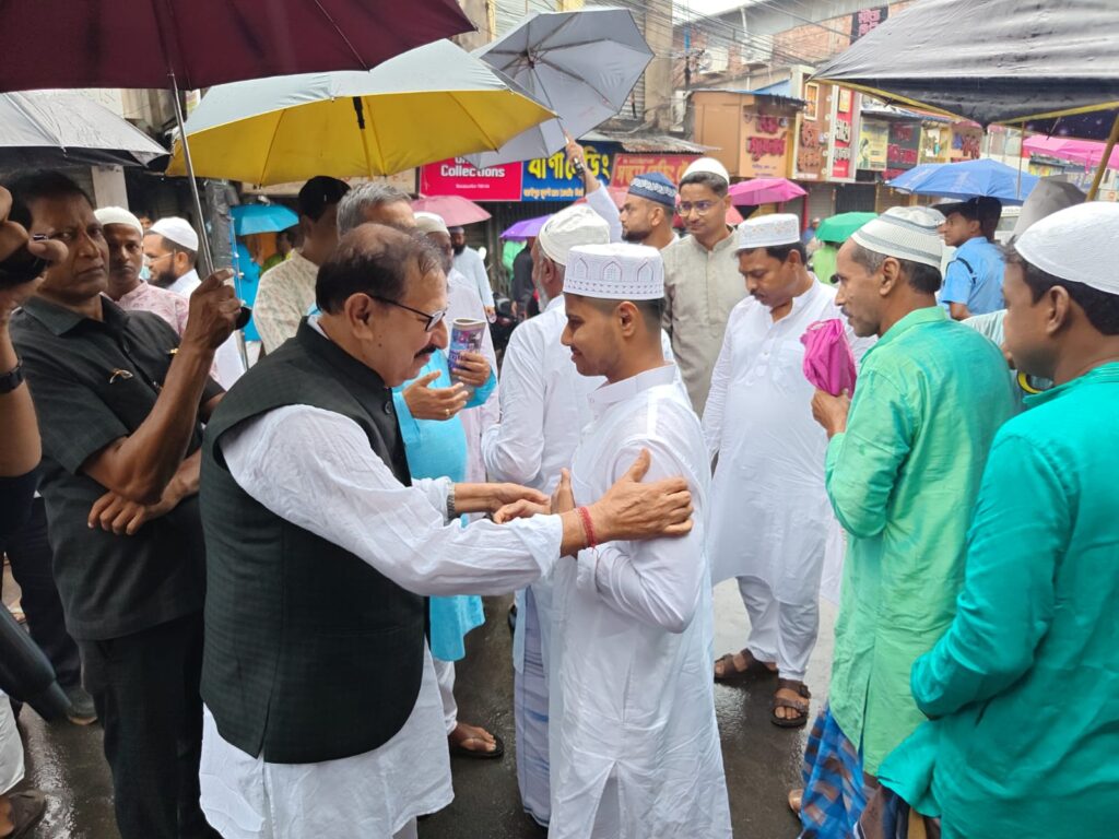 বৃষ্টি মাথায় নিয়ে মুসলিম ধর্মাবলম্বী মানুষদের শুভেচ্ছা জানালেন বিদায়ী অধ্যক্ষ