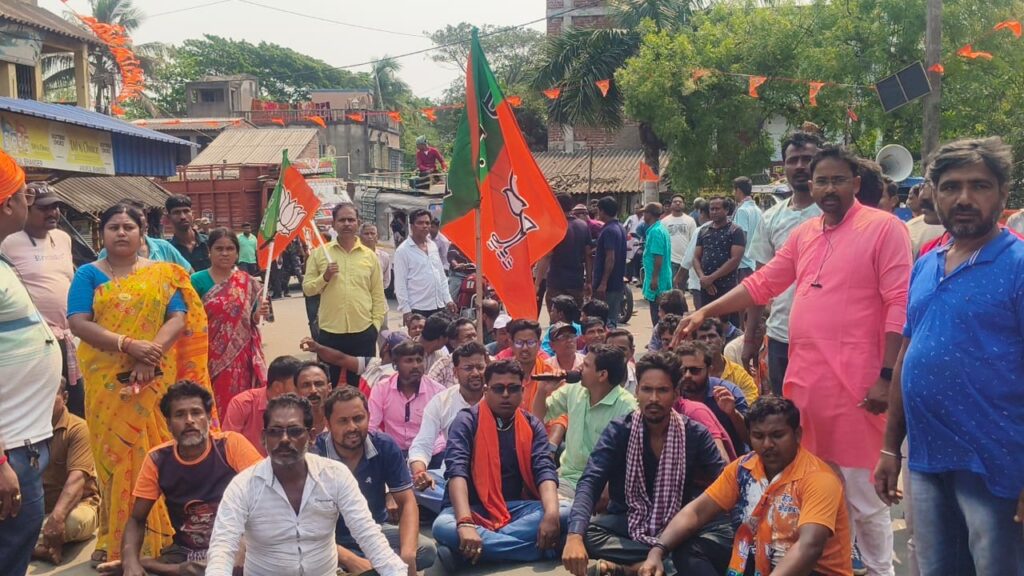 পূর্ব মেদিনীপুরে ভগবানপুর বিধানসভা কেন্দ্রের আড়গোয়াল অঞ্চলের সাতসত মাল,১৭৩ নং বুথের সেক মুজিবুর রহমান আলী,ও সেক রেওয়াজ উদ্দিন, বাড়ি,ঘর ভাংচুর করেছে তৃণমূলের হার্মাদ বাহিনী । এই অভিযোগ তুলে আড়গোয়াল ব্রিজের উপর বিজেপির কর্মী সমর্থক ও বিজেপি প্রার্থী শান্তনু প্রামানিক রাস্তায় বসে পথ অবরোধ করছেন।
