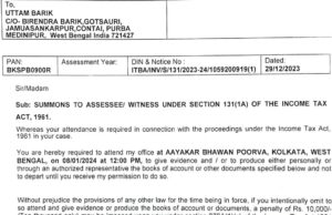 পূর্ব মেদিনীপুর জেলা পরিষদের সভাধিপতি তথা পটাশপুরের বিধায়ক উত্তম বারিক আয়কর দপ্তরের নোটিশ পেলেন। নোটিস দিয়ে তাঁর কাছ থেকে গত ২০১৭-১৮ আর্থিক বর্ষের আয়ব্যয় সংক্রান্ত