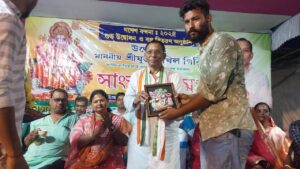 পূর্ব মেদিনীপুর জেলার বালিঘাইতে এগরা ২ ব্লক শ্রমিক সংগঠনের আইএনটিটিইউসির উদ্যোগ আয়োজিত সংবর্ধনা অনুষ্ঠানে উপস্থিত বিজেপির প্রতীকে জেতা স্থানীয় পঞ্চায়েত সমিতির শিক্ষা কর্মাধ্যক্ষ সূর্যেন্দু বর্মন।